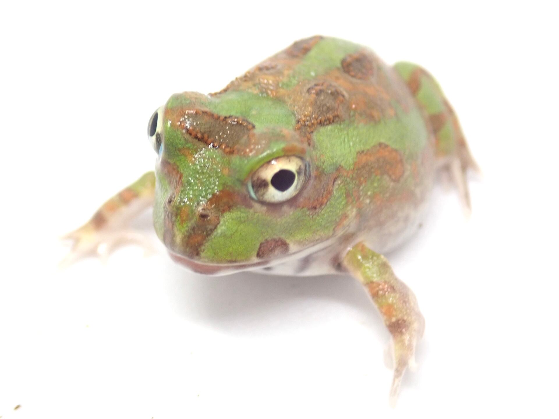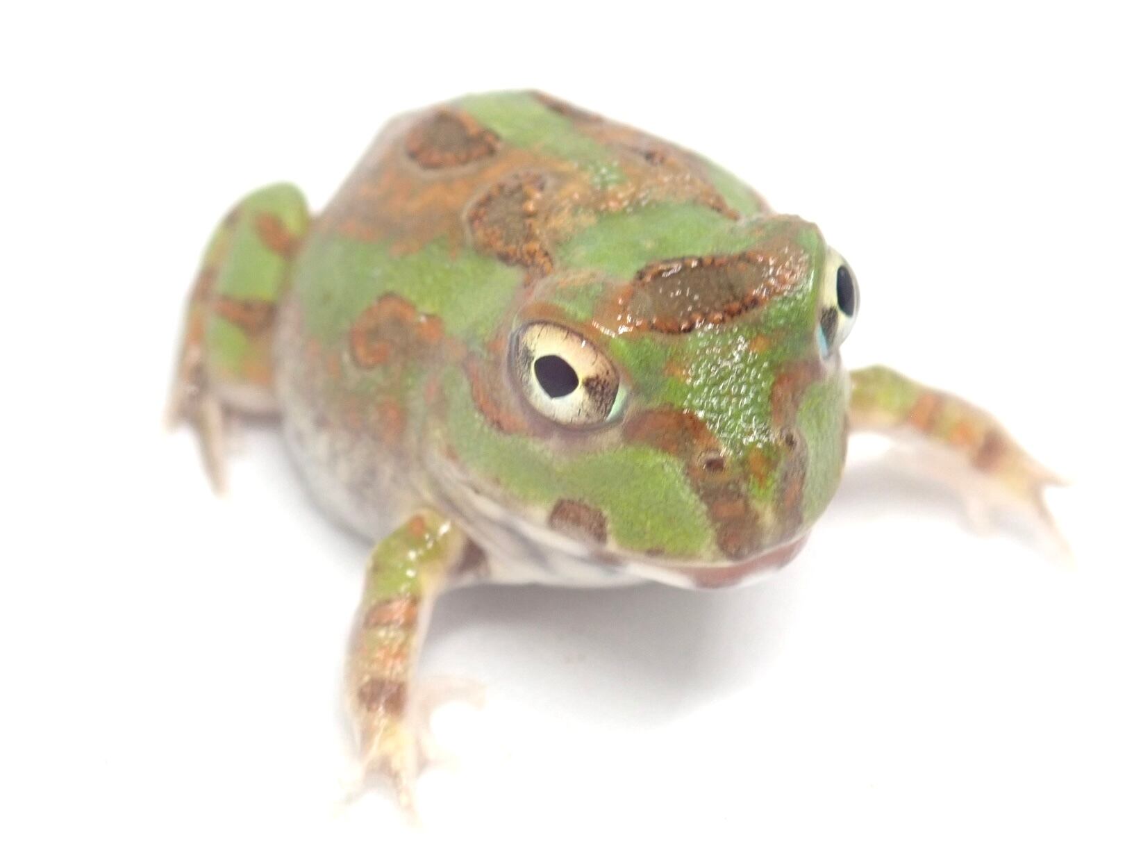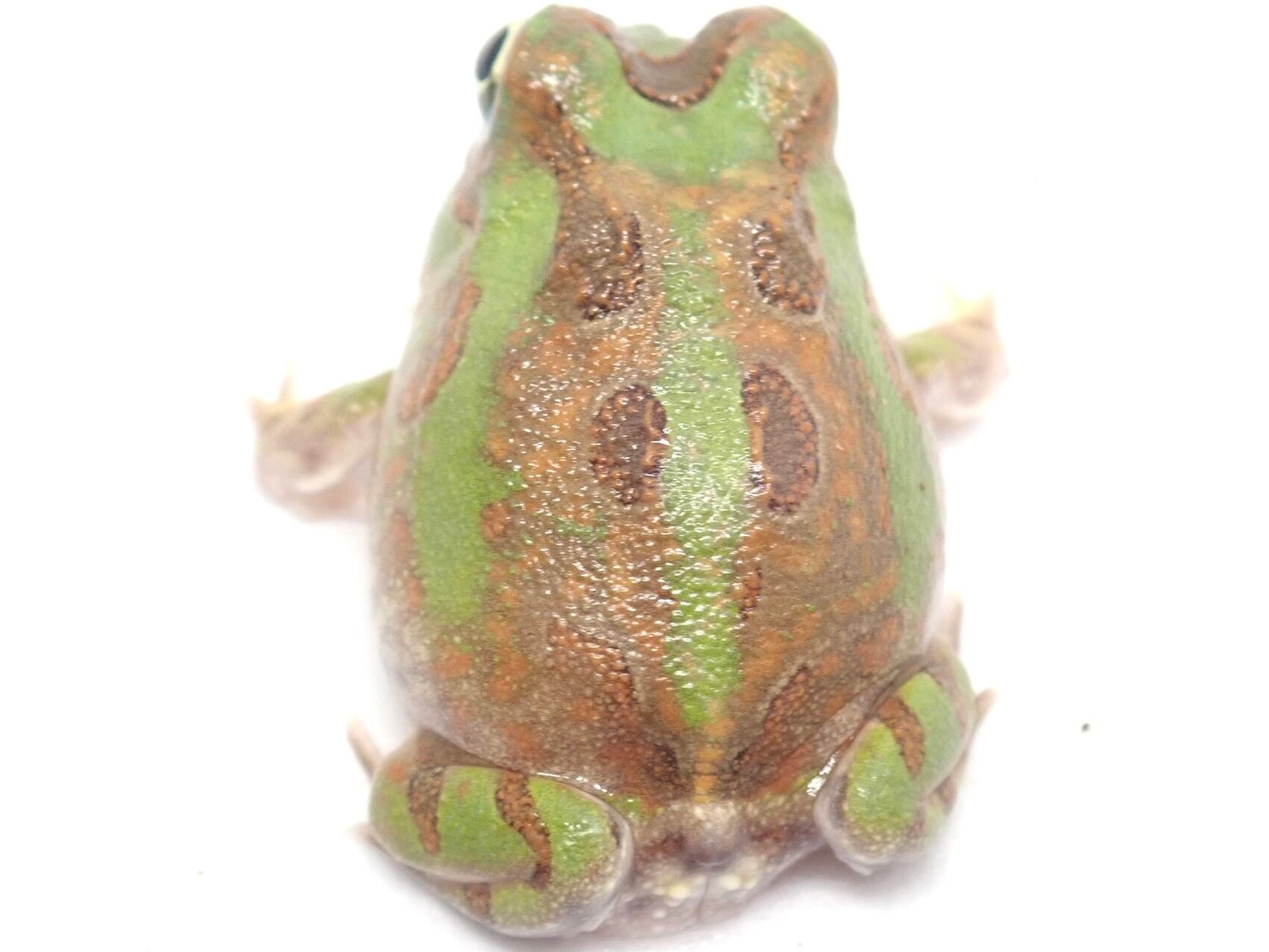 ボリビア産のチャコガエルです。高温多湿を好み、床材にはソイルなどを使用し、適度な湿度を保つようにします。昆虫類、人口飼料を食べています。