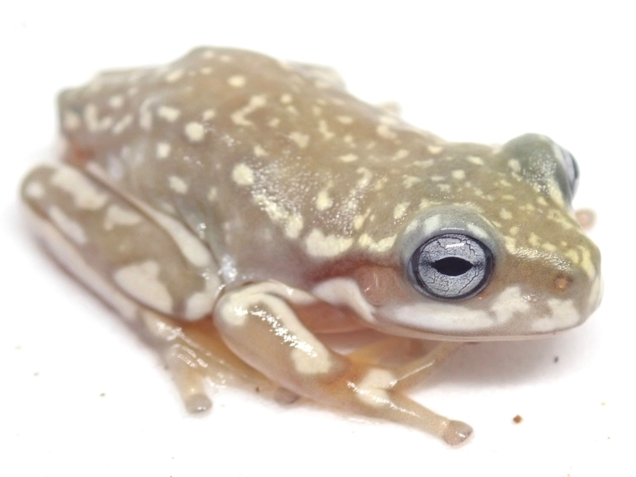 国内繁殖のイエアメガエル、ブルーアイ・スーパースノーフレーク個体。