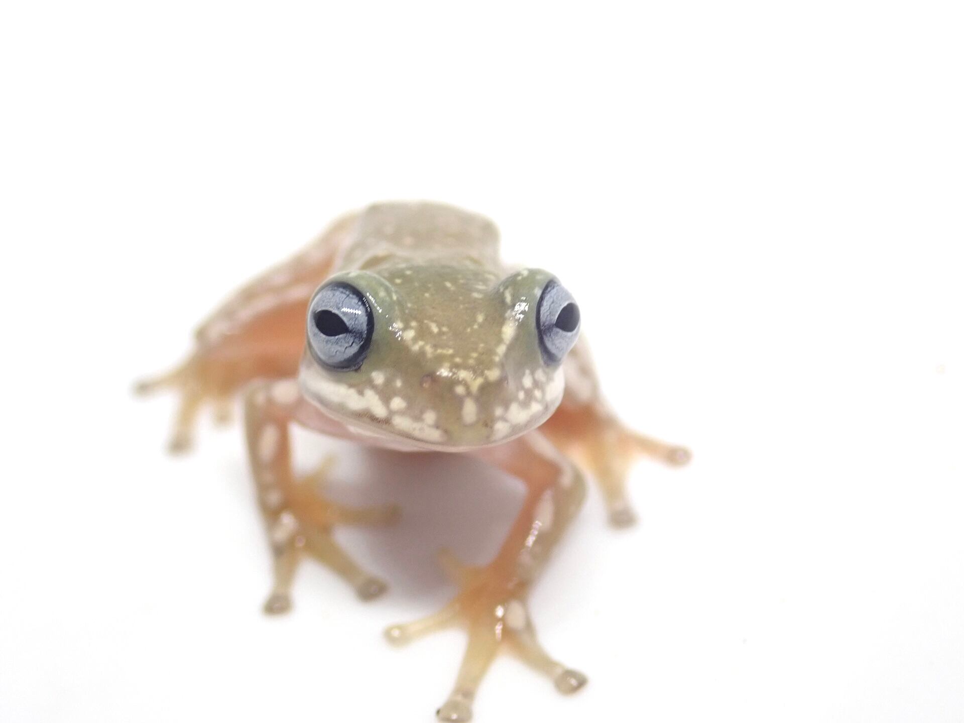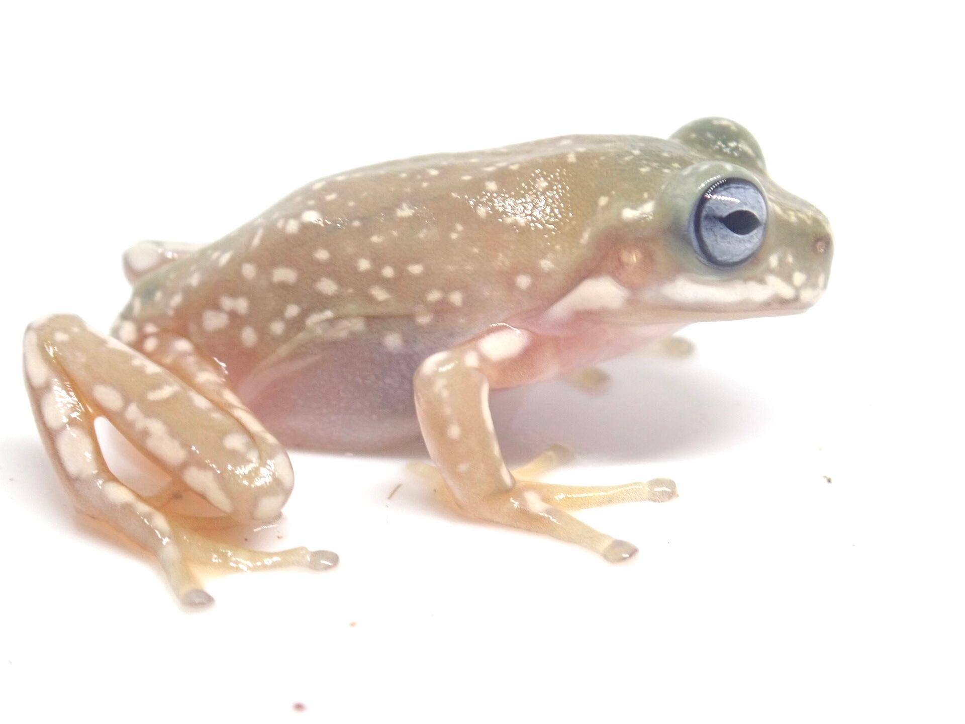 国内繁殖のイエアメガエル、ブルーアイ・スーパースノーフレーク個体。