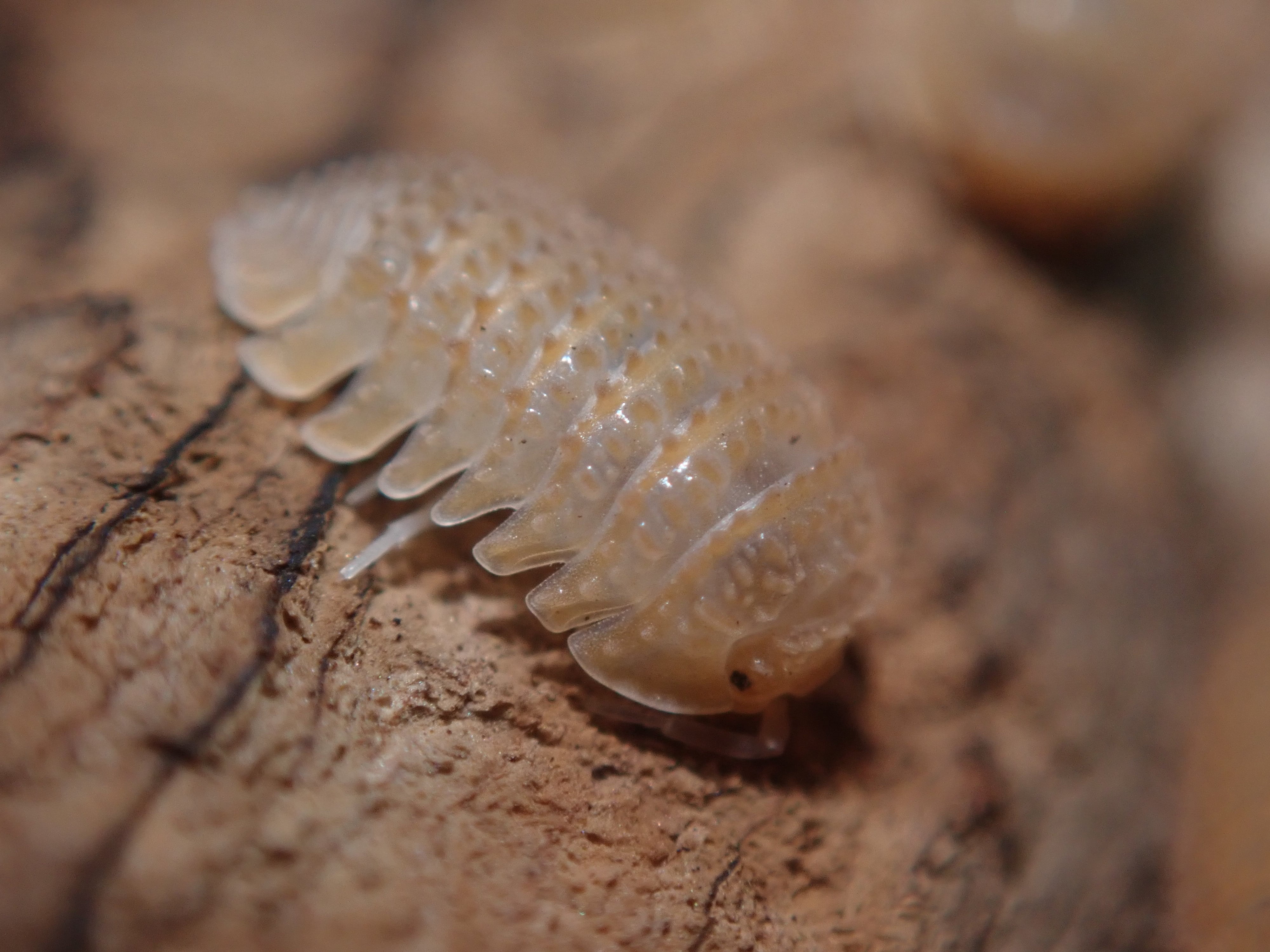 半透明のクリームイエローの体に、全身トゲトゲが並ぶ可愛らしい小型のダンゴムシです。