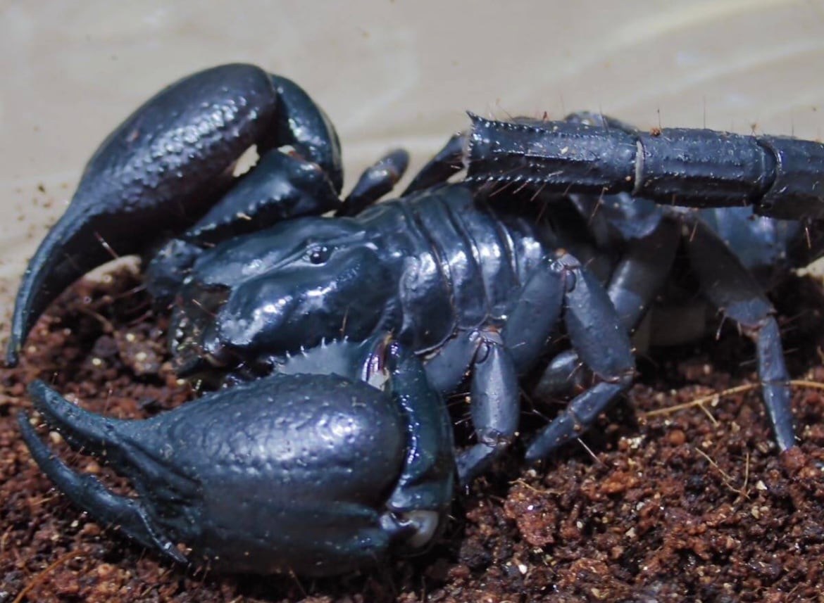 アジアンフォレストスコーピオンの魅力は、その美しい青味がかった黒のボディと強靭なハサミです。優雅さと力強さを兼ね備えた体型を持ち、存在感は抜群です。飼育もしやすく、初心者の方にもお勧めです。